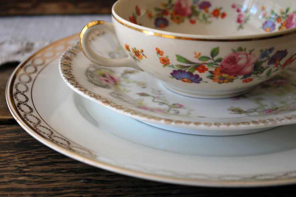 Since she was young, Cassandra’s mother and grandmother dreamed of her wedding day. Coming from a family of cherishing sentimental heirlooms and saving antiques, they began collecting plates for Cassandra’s future celebration over a decade ago—each piece chosen with love, beauty, and intention.